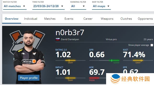 在艰难的主点人角色中,n0rb3r7在与VP阵容合作期间,平均rating为1.02,并在之前提到的IEM 里约Major以及ESL 挑战者 亚特兰大站中获得第一名。
