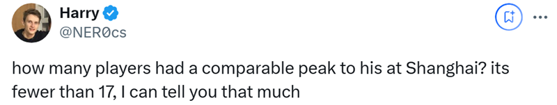 随后NER0给出了回复:“有多少选手能和ropz在上海Major的巅峰表现相媲美?我可以告诉你,这个数字不到17。”