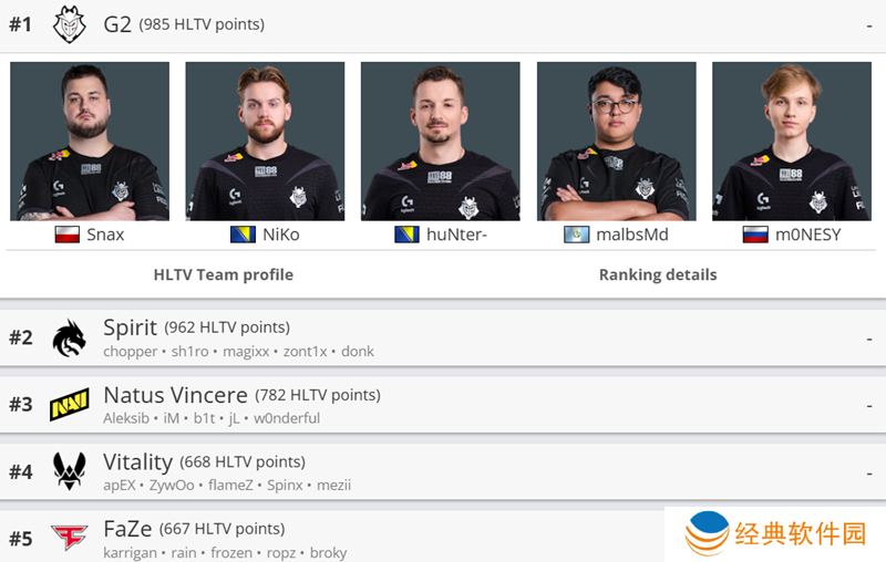 目前HLTV世界排名前五的战队——