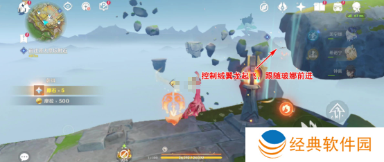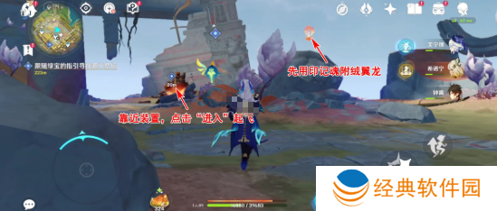 1、首先魂附绒翼龙,然后跟随指引前往下方的装置处,到达后点击【进入】按钮。