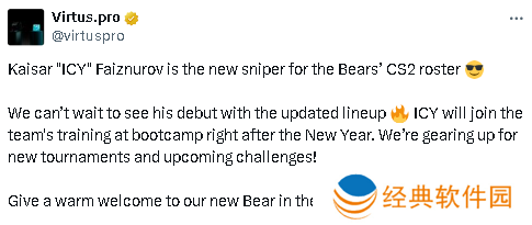 我们迫不及待地想要看到他在新阵容中的首秀, ICY将在新年后正式加入团队,并在训练基地中与队友们一起集训。我们正在为新的比赛和即将到来的挑战做好准备!”