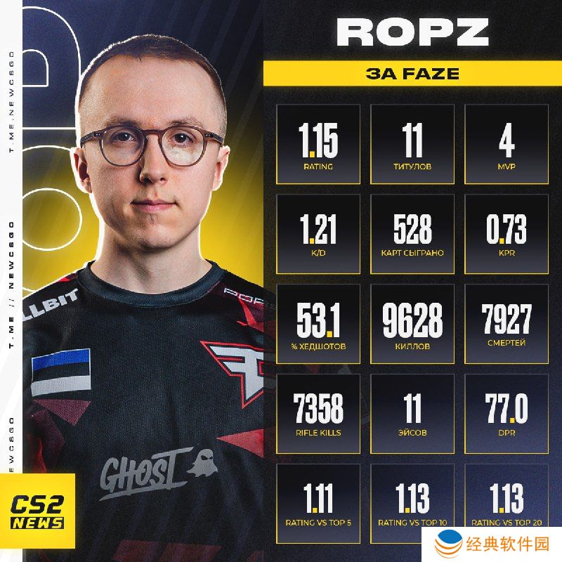 下面就让我们一起来回顾ropz在效力FaZe期间的成绩和数据表现吧。以下数据统计自HLTV: