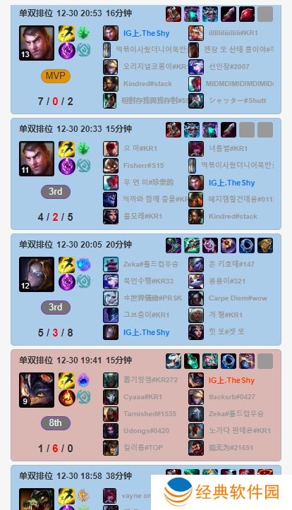 直播吧1月2日讯 德杯决赛落幕AL最终拿下冠军,圣枪哥在赛场上使用的“穿甲”流肉杰斯尽显奇效,近日Theshy在韩服排位中也玩起了“穿甲”流肉杰斯,目前Theshy杰斯战绩,“穿甲”流全胜,仅输掉一把穿甲输出流杰斯。
