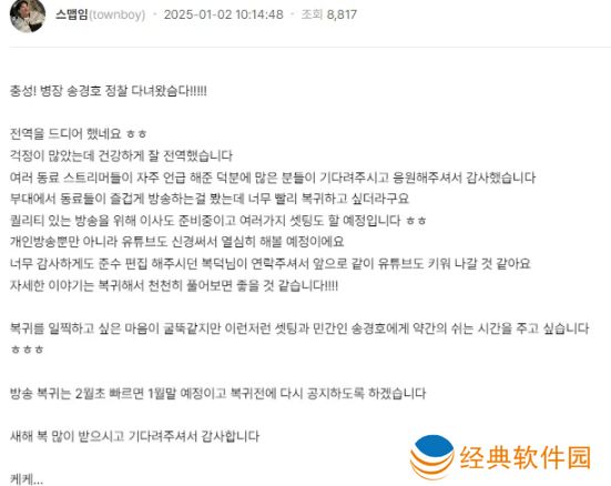 虽然很想早点回来,但是希望能给各种各样的配置和普通人宋坰浩一些休息时间哈哈。