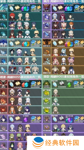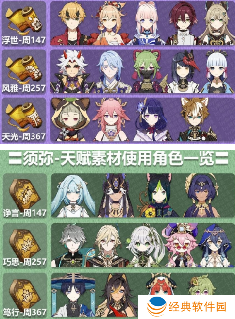 稻妻天赋素材使用角色一览