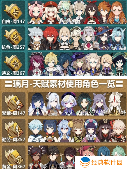 ◆旅行者所需的天赋书比较特殊,每种元素的的旅行者都是需要当前元素国家的三种天赋书,天赋每升三级循环一次,如风主就是蒙德天赋书自由→抗争→诗文→自由的循环。