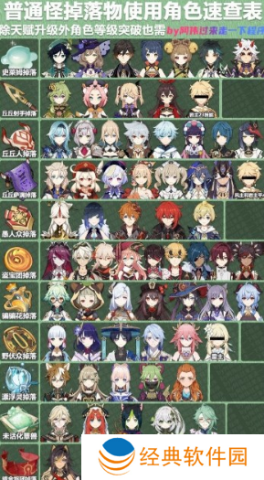 原神3.8精通移涌角色升级材料汇总: