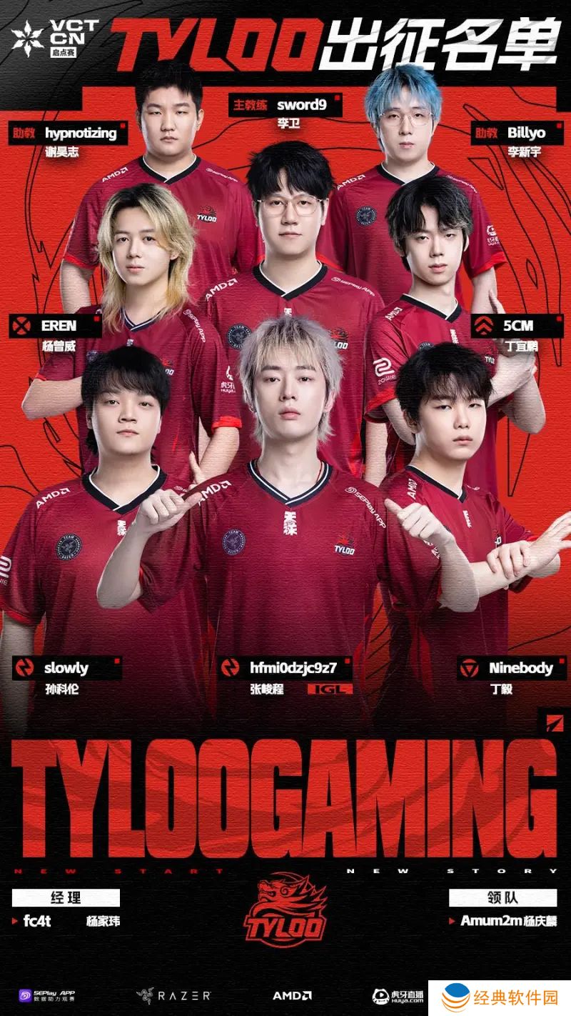 TYL发布2025VCT CN启点赛大名单:五位选手,sword9担任主教练