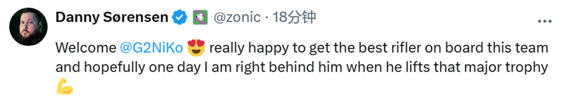 教练zonic也在社交平台上表示:“很高兴队内有NiKo这位最棒的步枪手,希望有朝一日他举起Major奖杯的时候我能站在他的身后。”