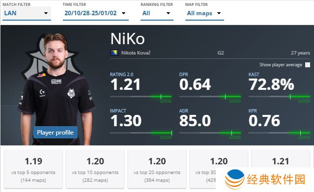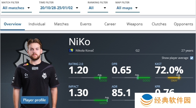 下面就让我们一起来回顾NiKo在效力G2期间的数据表现。以下数据统计自HLTV: