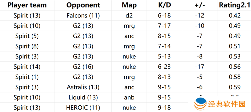 Leonid Vishnyakov | chopper经常被直播间吐槽是吉祥三宝,但如果从数据看,吉祥三宝在对阵G2时的发挥也不尽相同。尤其是magixx似乎尤其被G2战队所克制。笔者查看了Spirit战队选手今年倒数十张地图数据(数据截止到上海Major揭幕战阶段开始之前)。如果各位仔细查看,会发现五位选手的十差地图数据中G2占比不尽相同。chopper为四张地图,作为指挥这样的数据完全能够接受。zont1x为三张图,是不是有些意外?zont1x在面对G2时很多时候还是宗主。