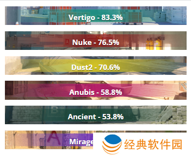 在近六次交手中,两支队伍的交手地图相对固定:Mirage出现6次、Ancient出现四次,Nuke出现四次,Anubis和Dust2各出现两次。Vertigo是Spirit在近半年胜率最高的地图,为83.3%,其次是Nuke,为76.5%,第三是Dust2,为70.6%。