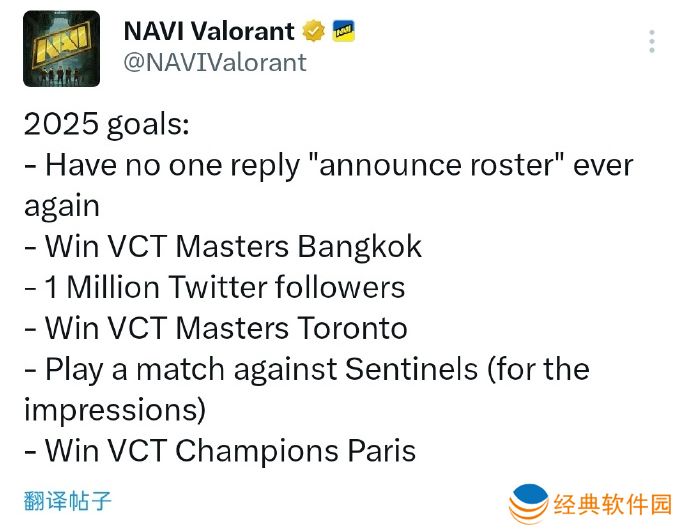 此前,NAVI战队在社交平台po出了2025年的目标: