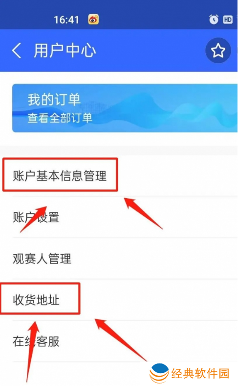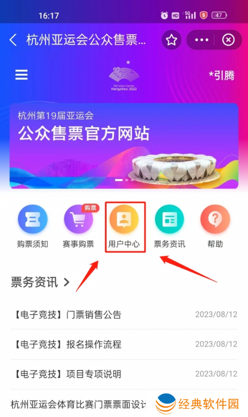 3. 完成注册后,回到票务通的主页面,点击【用户中心】,填写观赛人信息和地址,提前填好信息抢票快人一步!