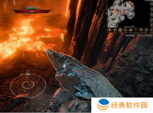 2、玩家需要旋转地图,让洞穴处于屏幕上方中间的位置往左下角走就可以找到精金矿石,可以用来打造精金鳞甲。