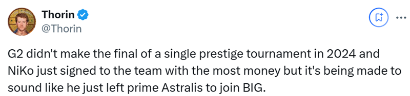 G2战队在任何一项名望赛事中都没能打进决赛。NiKo以高薪签约Falcons战队,但听起来就像他刚刚离开巅峰时期的