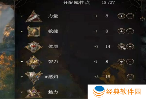 3.由于它的特殊战斗方法我们的属性加点绝大部分都加在感知敏捷和体质上。