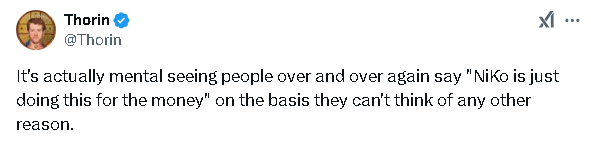 “实际上,每次看到人们一次又一次地说“NiKo只是为了钱而这样做”,我都会感到无语,因为他们没法想到其他任何理由来说了。”