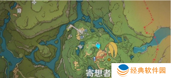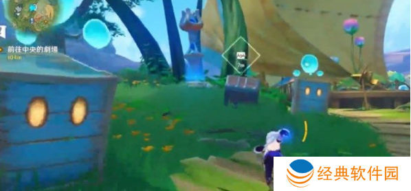 1、首先我们来到寄想者剧场传送点附近,找到水灵捉迷藏宝箱,具体位置如下图;