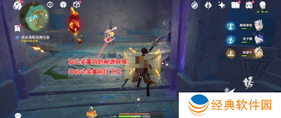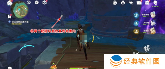 4、爬楼梯到上层后,只需将刚才获得的两个秘源碎屑放入装置中即可完成第二处解密。