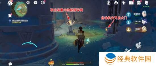 3、到达下层后前往大门附近,之后只需取出另一个装置中的秘源碎屑就会成功开启大门。