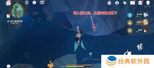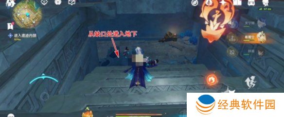 4、最后就会看到下方的缺口,玩家只需跳入里面就会到达遗迹内部。