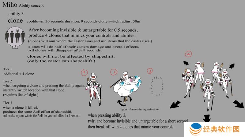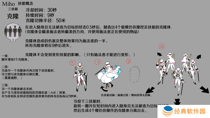 三技能“克隆”是一个绝佳的逃生工具,还可用于多种不同情况,比如应对半血小兵、扩大技能范围或物品作用范围,并且如果位置摆放精准的话,还能造成高额伤害(此处“nuking”原意为用***攻击,游戏语境中常指造成高额伤害)。