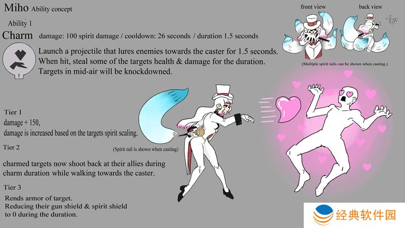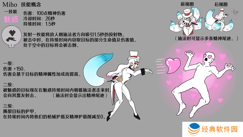 一技能“魅惑”是这样一种技能,一旦命中敌人,不仅会迫使对方朝你走来,还能在短时间内窃取敌人一部分生命值、枪械伤害以及精神伤害。所以,敌人越强、越肉,这个技能的效果就越显著。