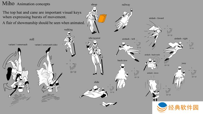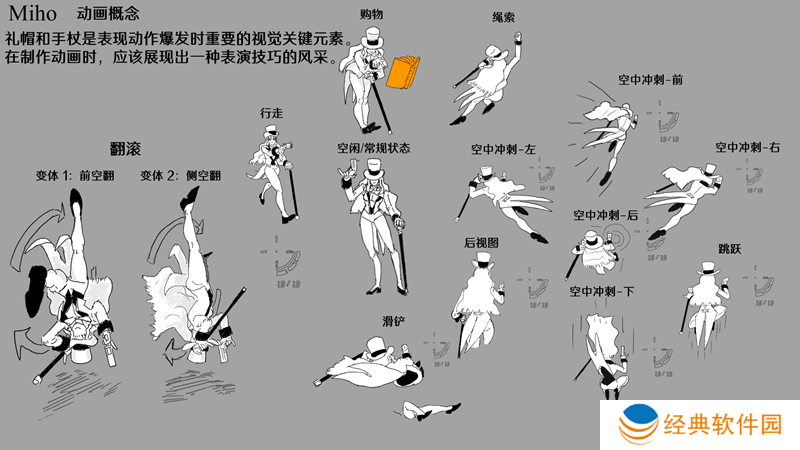 手杖和高顶礼帽可以作为强调移动爆发的很好方式。