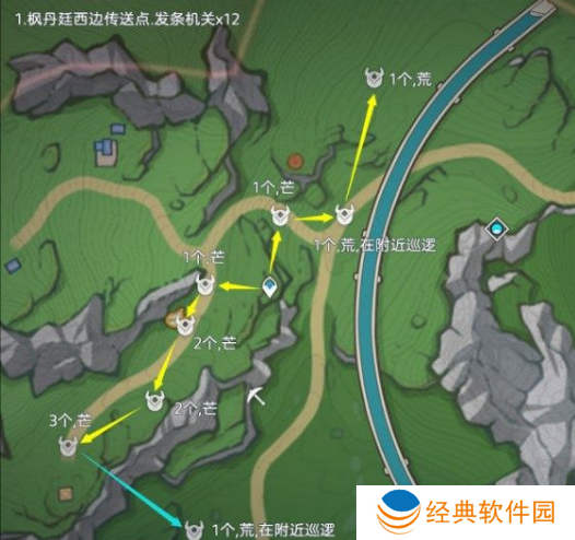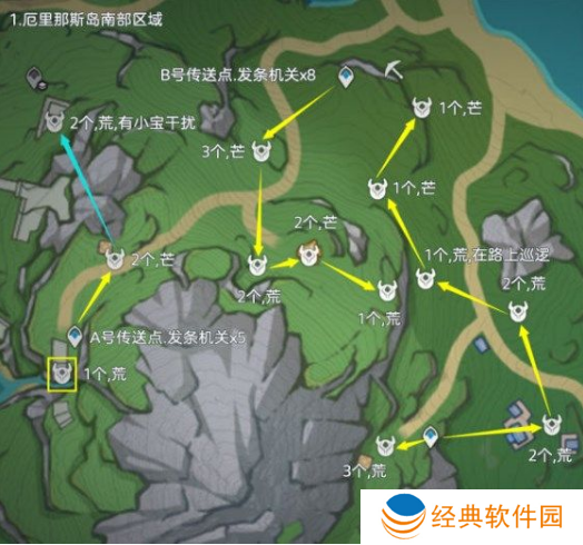 重要提示:黄色路线为高效率刷取路线、推荐去;