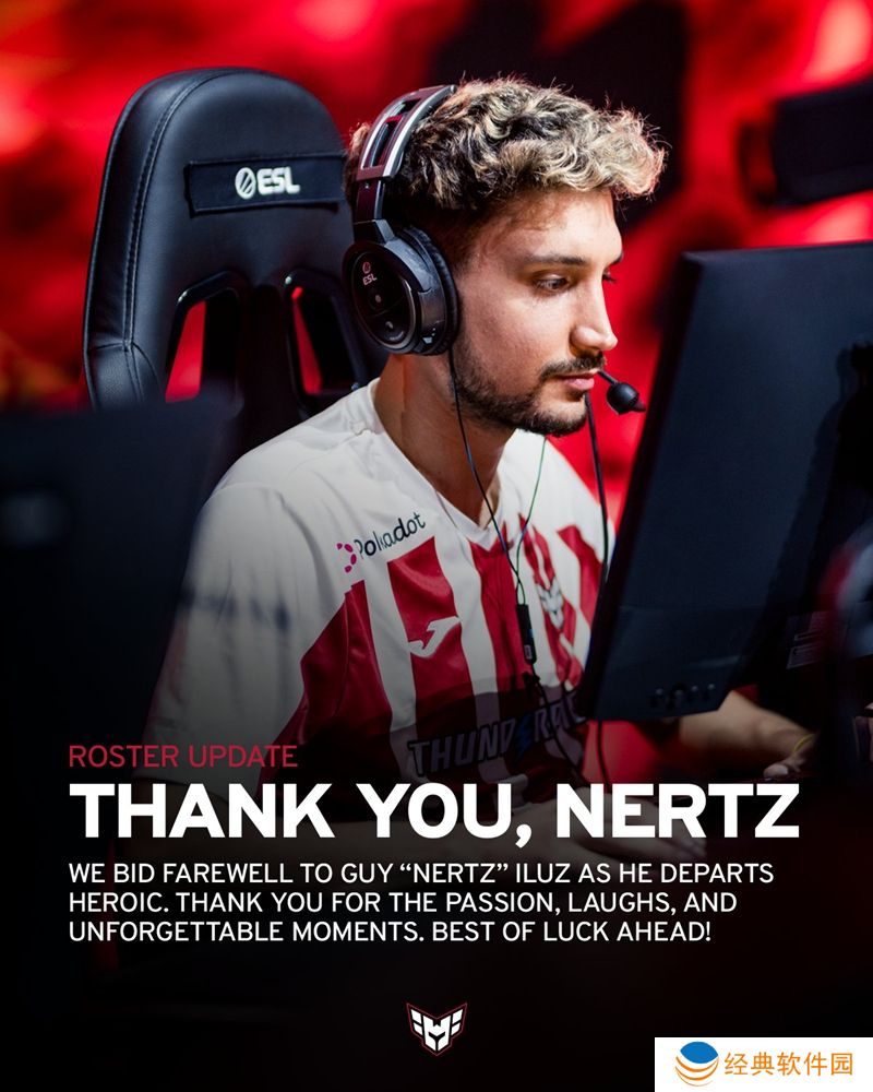 “感谢你,NertZ。我们向NertZ告别,他离开了HEROIC。谢谢你的激情,欢笑和与你度过的难忘时光,祝你好运!”
