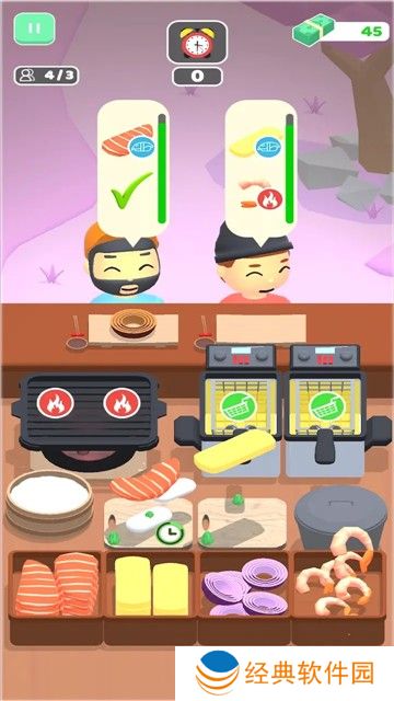 3.自由的游戏方式:游戏中没有固定的游戏目标,玩家可以自由发挥,根据自己的喜好和经验来玩,你制作的食物价格也会不断的增长,让更多的客人前来购买你的美食。
