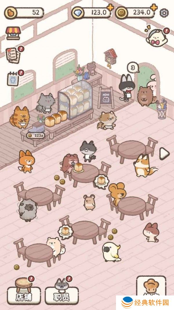 3、萌宠角色互动:在游戏中,玩家将拥有一只可爱的萌宠,玩家需要照顾宠物的生活,并与宠物进行互动。宠物不仅可以陪伴玩家度过游戏时光,还能够帮助玩家吸引顾客,提高甜品店的人气和收入。
