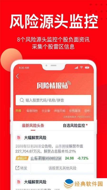 3、风险源头监控,8个风险源头监控个股负面资讯采集个股雷区信息;