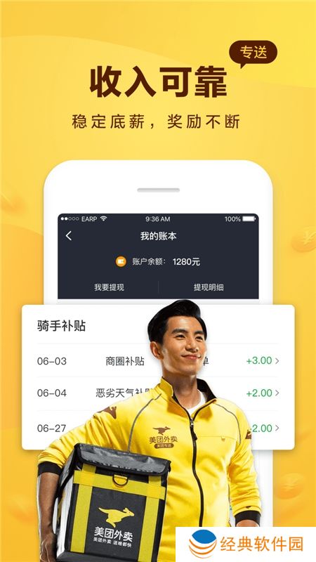 1.美团专送,便捷注册,快速接单,工作稳定收入高