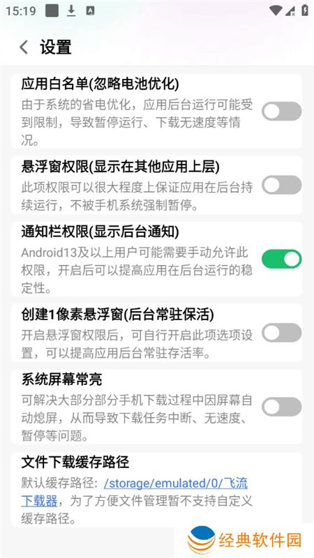 Android13及以上用户可能需要手动允许此权限,开启后可以提高应用在后台运行的稳定性。