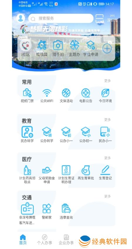 5、交通出行,实时公交、停车场无感支付、停车场查询、轮船票务等;