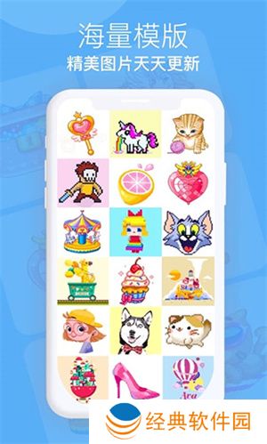 3、多元化的游戏玩法:开心图图乐游戏中包含了多种不同类型的小游戏,玩家可以按照自己的喜好进行选择,选中自己喜欢的模板图案进行涂色活动。