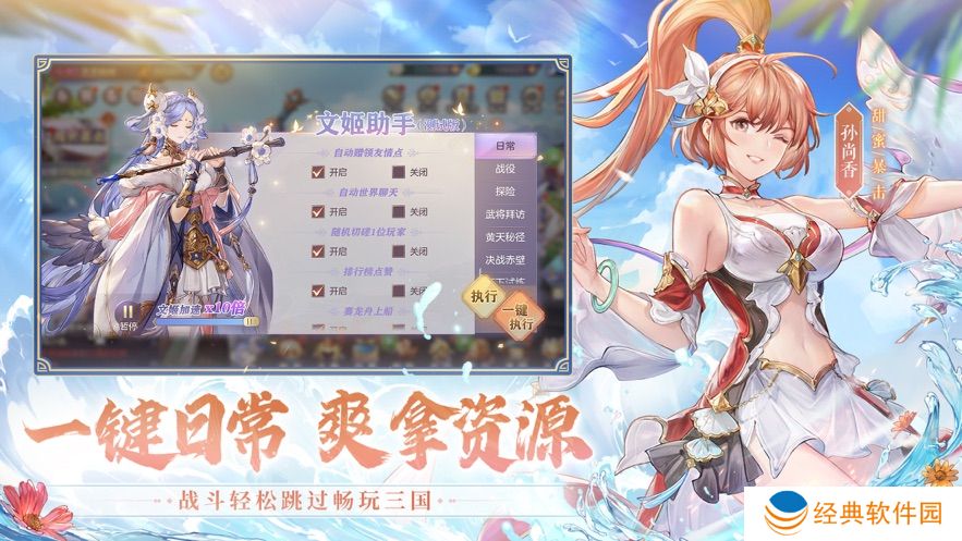 2、自由成长与培养:玩家可以通过参与战斗,完成任务来提升武将的等级和技能,自由选择培养方向,打造属于自己的强大武将团队操作。