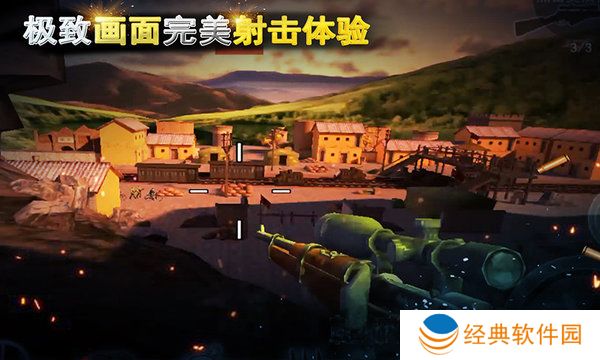《二战狙击1.2.0版》这是一款以二战为背景的第一人称射击游戏。玩家将扮演一名狙击手,穿越到二战中,执行各种刺激的狙击任务。游戏以真实的二战历史为基础,通过引人入胜的剧情以及极富挑战性的游戏玩法,为玩家呈现了一场拥有强烈战争氛围的游戏体验。游戏里有真实无比的3D画风,简单操作玩法,用你的狙击枪击毙那些黑衣匪徒,完成狙击任务,获取更多奖励,不断强化战力。在狙击敌人的过程中,不能伤害其他平民百姓,不然也是以失败告终的。