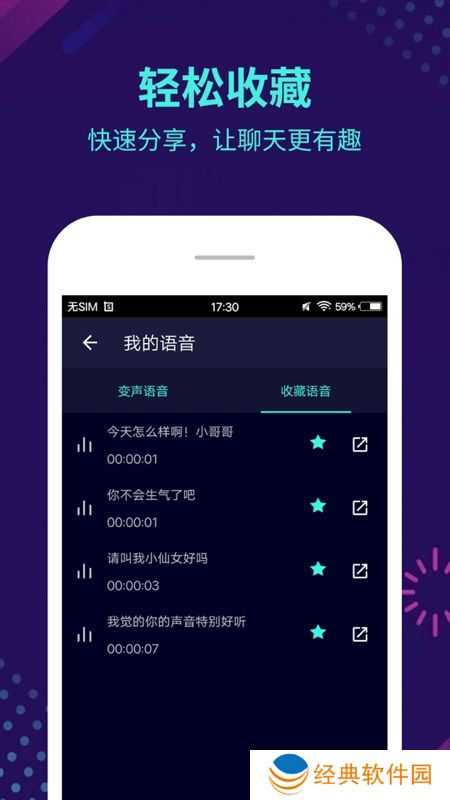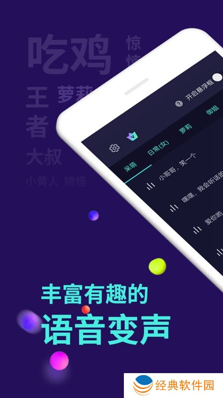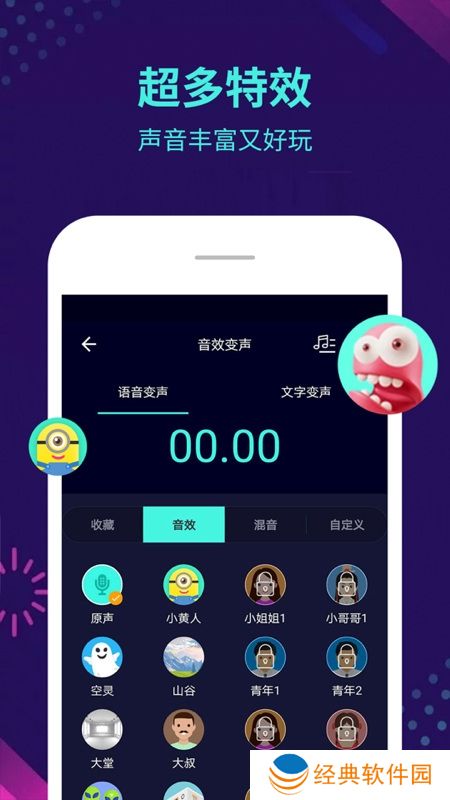 2.多种变声效果可选:**、大叔、小孩、幽灵、机器人...... 变声时只需轻轻一点,让你成为自带BGM的潮人