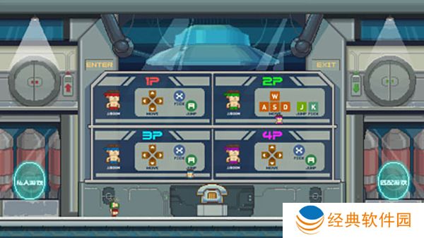 游戏中会随机生成各种道具,玩家可以利用这些道具来增强自己的战斗能力,例如,可以抓起其他小伙伴丢过来的武器进行反击,或者利用道具抵御敌人的攻击;