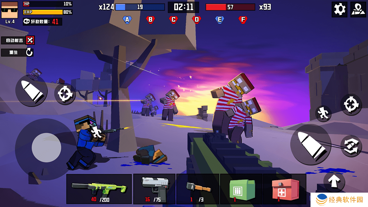 《战地精英枪战王者无广告版》是一款高度还原真实战场体验的第一人称射击游戏,在游戏中,玩家将扮演一名战争英雄,与其他玩家进行激烈的枪战对决。游戏采用了先进的图像技术和精致的画面,呈现了逼真的战争场景,给玩家带来身临其境的战斗感受。它也有简易的操作手法,以及清晰明了的界面设置,让玩家能轻松游戏。你可以去不同场景里进行射击挑战,而且它还有白天和黑夜,这能让你有更好的游戏体验。游戏是像素的画风,但不会影响玩家的快乐。