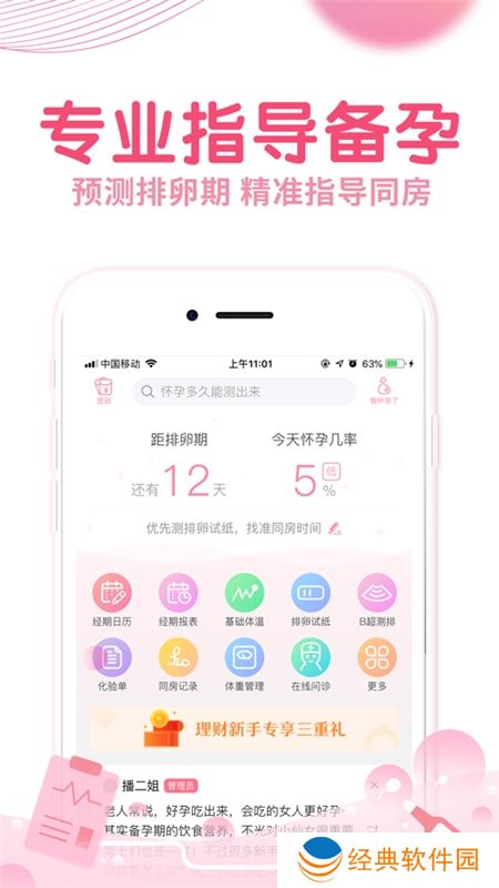 软件优势:【更方便】排卵期(排卵日)以月经周期、基础体温来测算,不错过**和**恋爱的机会