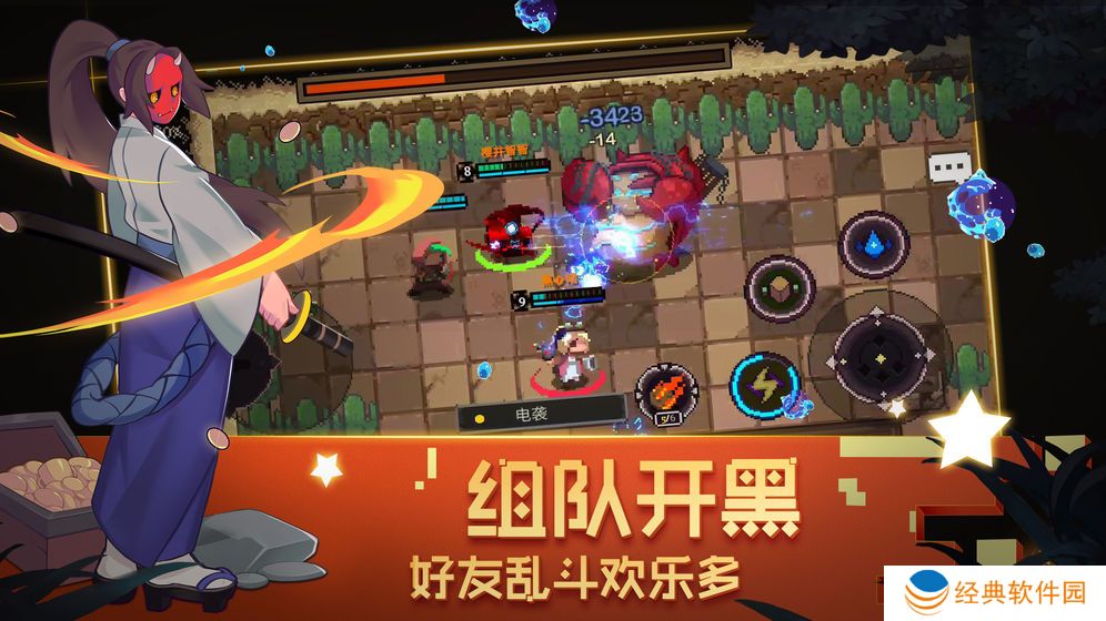 2、多人合作:游戏支持多人在线合作玩法,最多可以组队4人同时进行地牢探索。玩家可以与好友或其他玩家组队,共同挑战地牢中的各种困难和战斗,体验团队合作的乐趣。
