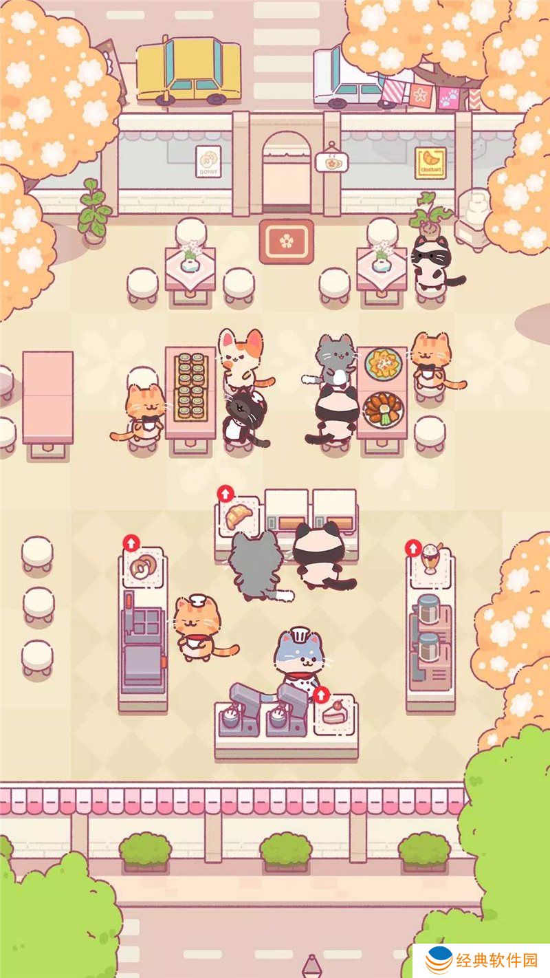 4、发展经营:通过完成任务和提升顾客满意度,玩家可以解锁更多的猫咪品种、菜肴和装饰物。同时,你可以购买更大的店面、扩展餐厅规模,吸引更多的顾客前来用餐。