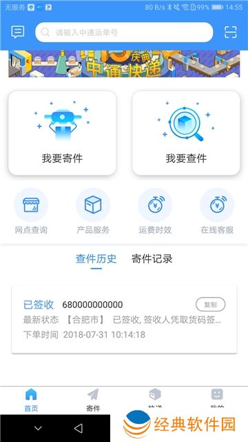中通快递单号查询app手机客户端是一个提供中通快递单号查询的音乐,你可以通过app追踪你的物流信息,同时还有寄件服务,让你了解当前快递的情况。