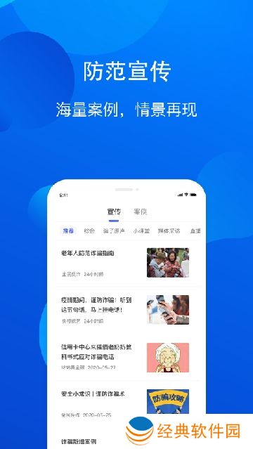 全民反诈app是一个宣传诈骗知识,防范网络诈骗的应用,能够提高市民的网络诈骗防范意识,减少电信网络诈骗案件,减少市民的财产损失,同时还有线上举报,取证等内容。