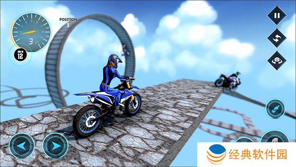 3、技巧表演:超级坡道摩托车比赛游戏中还提供了一些特殊的技巧和动作,玩家可以通过完成这些技巧来获得额外的奖励和积分。这些技巧包括空中翻转、滑行和跳跃等。