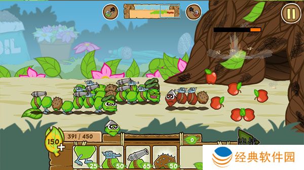 4、激战毛毛虫军团中玩家可以自由发挥,不受限制。玩家可以根据自己的喜好和策略,选择不同的毛毛虫角色和防御塔,进行自己的战斗进行操作。